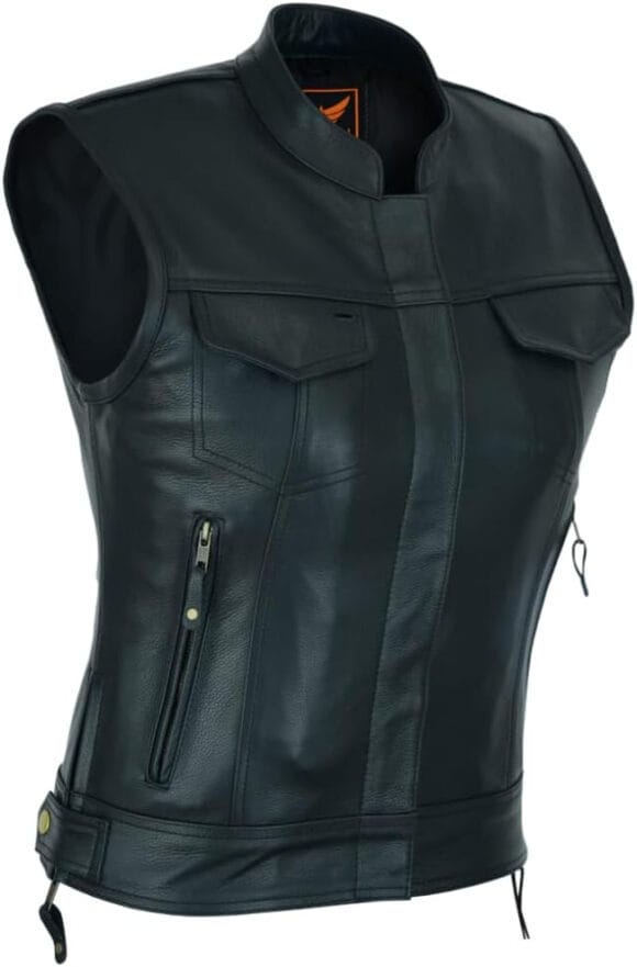Women’s Top Grain Leather Club Style Motorcycle Vest | Dream Apparel