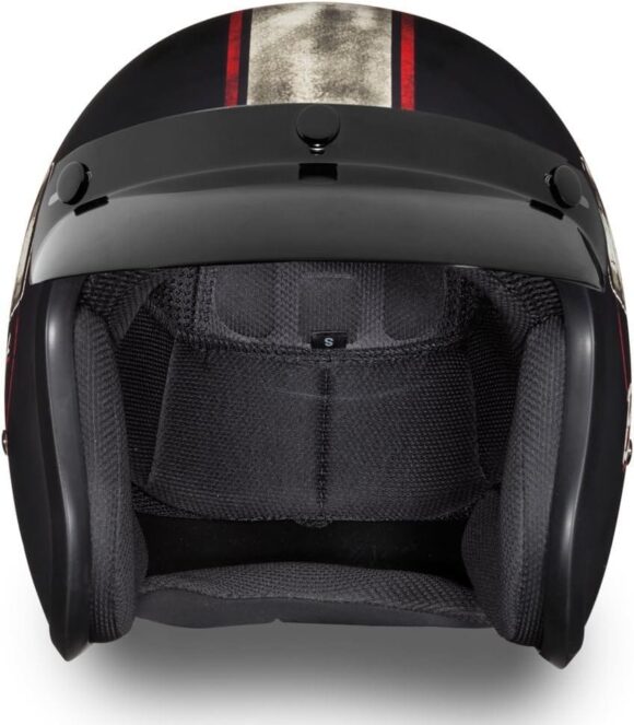 I love this new version of a classic helmet I used to have from back in the 80s it is comfortable and fits perfect I love the quick release on the chinstrap as well And there’s plenty of room around my ears, so I have great hearing while I’m writing I am going to add the addition of a full face visor, though I totally recommend this helmet if you’re looking for a classic three-quarter motorcycle helmet