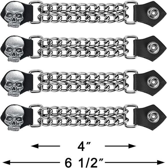 • [Exquisite Design] – The motorcycle biker vest extender features Skull Head, and unique design helps you express different and cool style. Attach Skull Head vest extenders to your vest to increase your own identity and personal style.