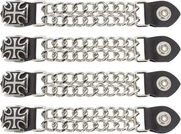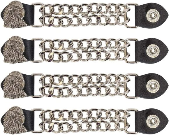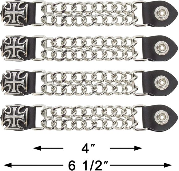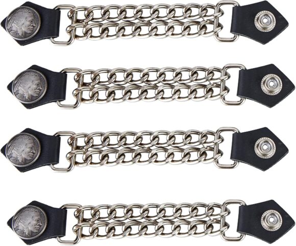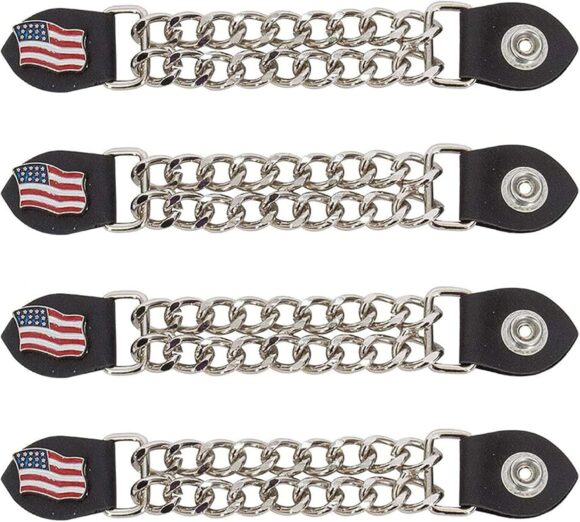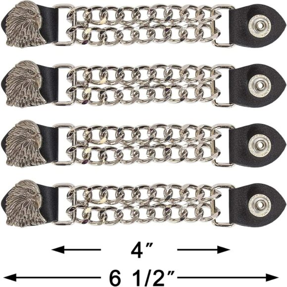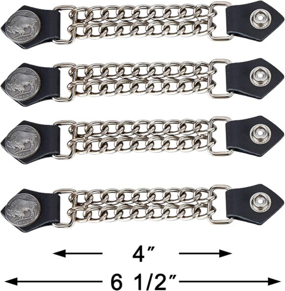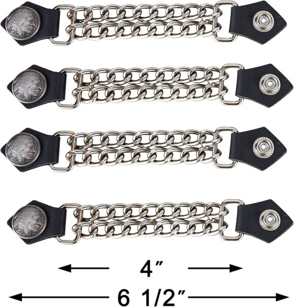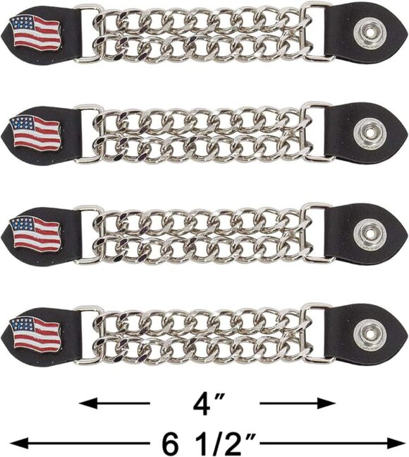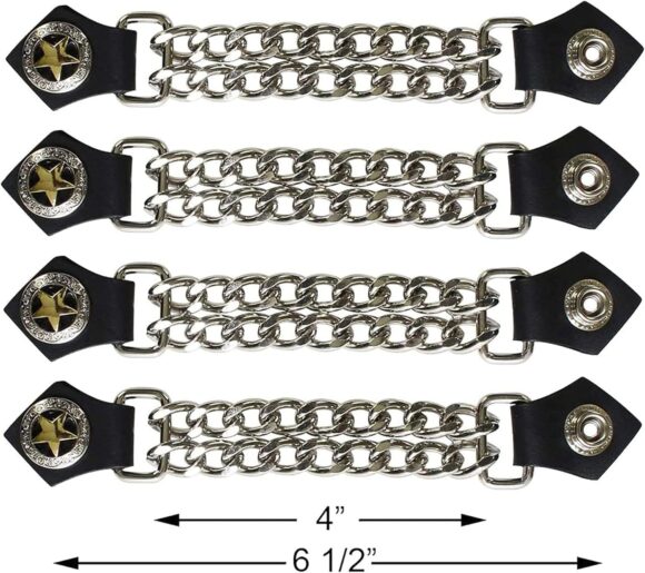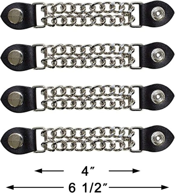 Dream Apparel 4-Piece Leather Vest Extender Set | Chrome Chain