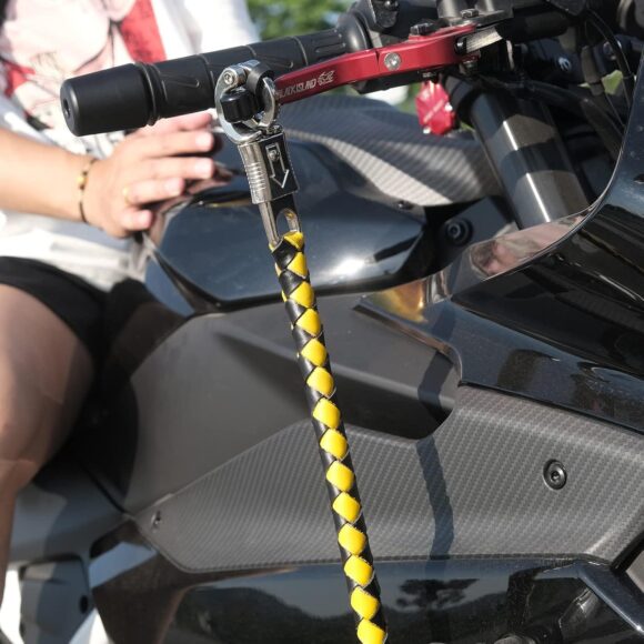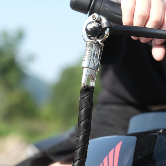 - [Eye-catching & Protective effect] – The motorcycle whips remains a terrific way to attract the attention of other drivers, helping other motorists see you more easily and keeping you safe on your ride. And add to your personal style. hand-braided leather wrapped around a nylon core, strapped to a solid stainless steel quick release makes this biker whip be a great accessory for your motorcycle.