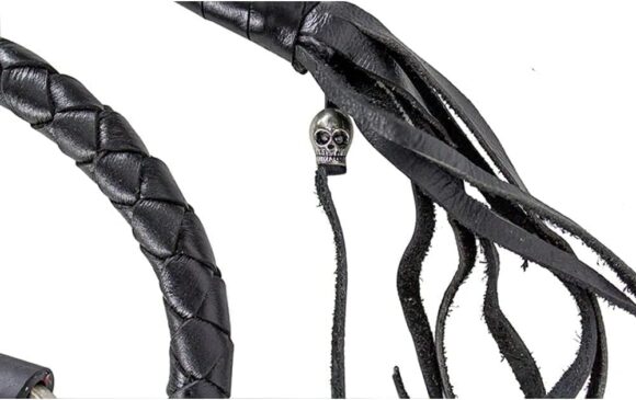 GARGOYLE BELLS 42″ Genuine Leather Motorcycle Get Back Whips Bikers Whips with Stylish Fringes – Premium Handlebar Accessories for Bikers