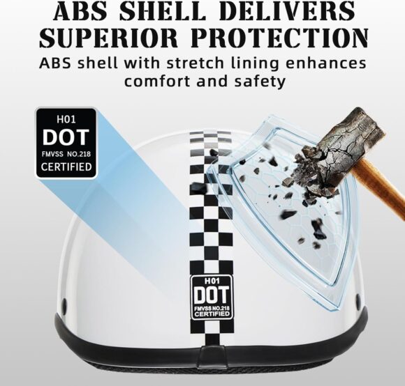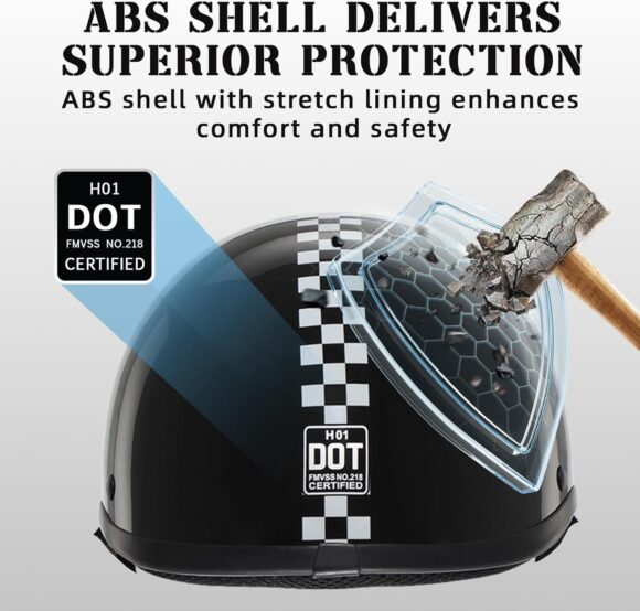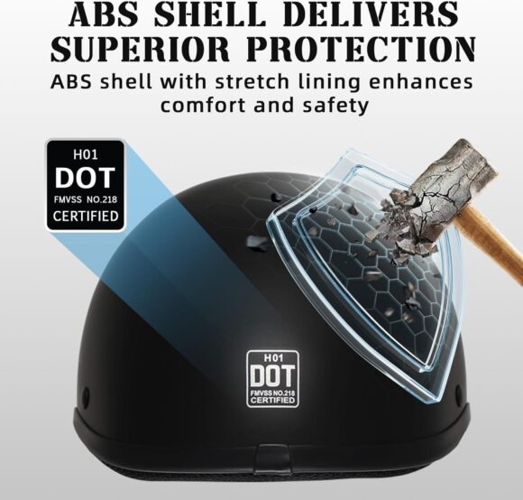 TRIANGLE Half Helmet: DOT-certified ABS shell with impact-absorbing core for style & safety. Lightweight comfort meets rugged durability.