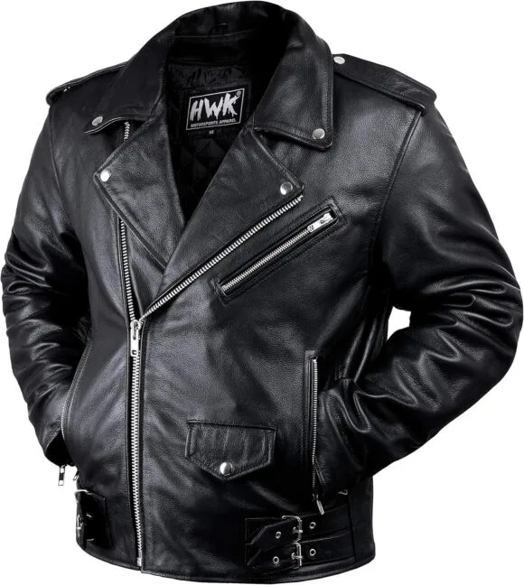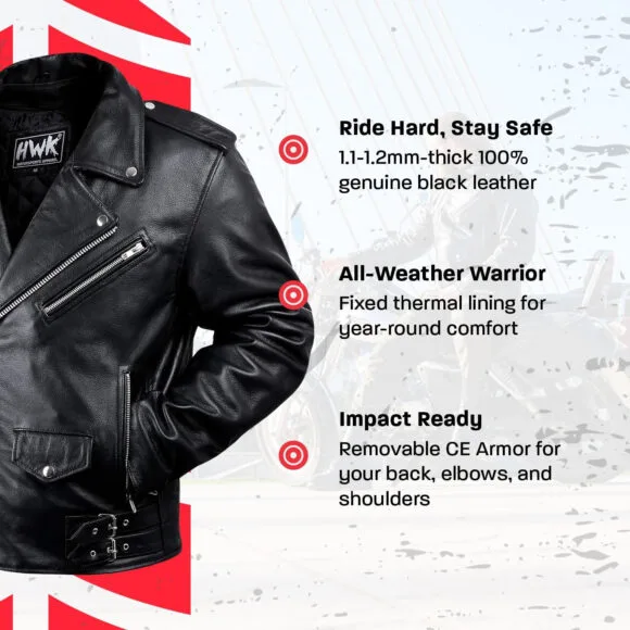 HWK Men’s Brando Leather Motorcycle Jacket | CE Armored