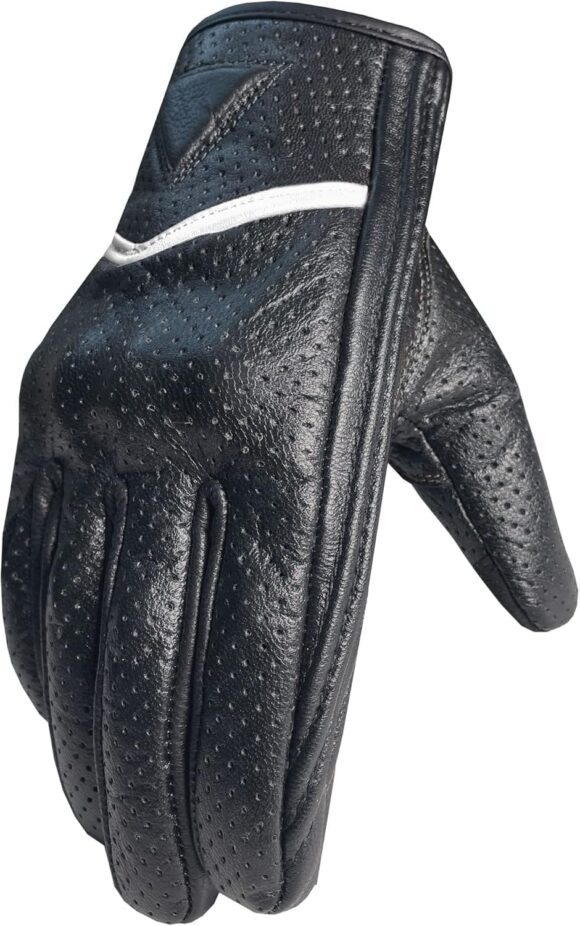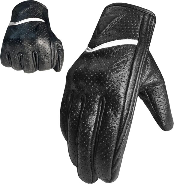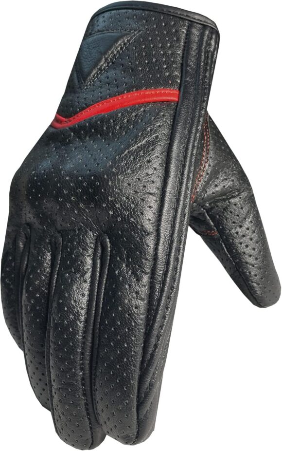 I prefer to wear leather gloves on my bike. I know there are materials nowadays that are safe and strong. But I definitely prefer real leather. However, leather is hot, especially here in South Florida. What I like about these gloves is they are leather and they have air holes in them. I am amazed how remarkably cool they are. The air holes actually work well. My hands sweat a lot less. The leather is also super soft. I was a bit concerned at first they would tear, especially at the low price point. But they hold up well. I use them daily and have had no issues with deterioration. They also have knuckle protection that feels protective, but not intrusive. I saw that some have pointed out that the leather dye bleeds in the rain. I have worn them in the rain, and it did not happen to me. Just calling out.One other thing to call out si with sizing. I typically wear an XL, however, with these gloves L is what fits me best. The palm fits with the L, but the fingers length is a little long. I do, though, like the roominess. I have not used the touchscreen so I can not comment on that feature.All in all, well worth the price. I would buy again. Plus they look supeer cool.