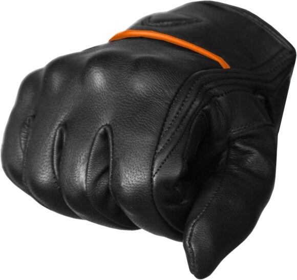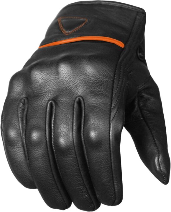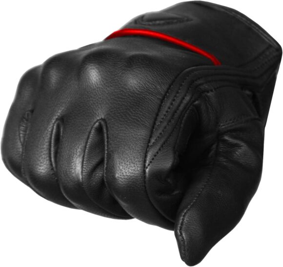 - TOUCHSCREEN COMPATIBLE: Our leather motorcycle gloves feature touchscreen-compatible material on the index finger and thumb, allowing you to easily use smartphones, GPS devices, and other touchscreens without removing your gloves. Perfect for staying connected on the go.