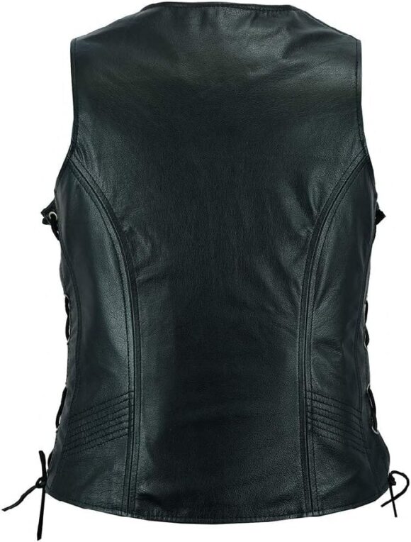 Women’s Buffalo Leather Motorcycle Vest | Top Grain Black