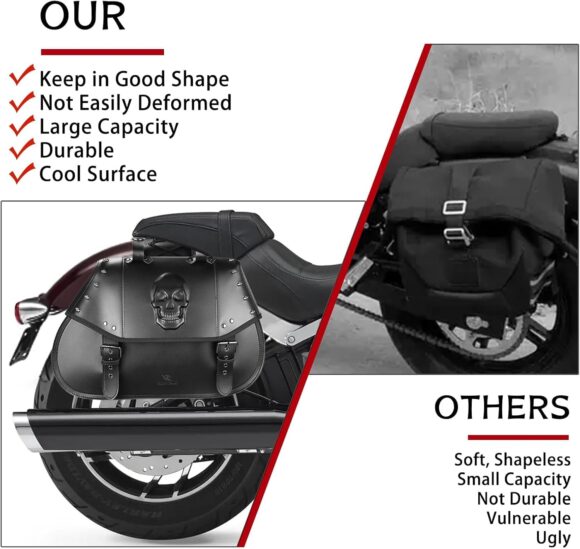 - [FIT MOST MOTORCYCLES] These motorcycle saddlebags is suitable for most motorcycles, such as Harley Softail Dyna Fat boy 114 Street Bob, Yamaha, Honda, Kawasaki, etc. You can contact us to inquire whether it is suitable for your motorcycle model.