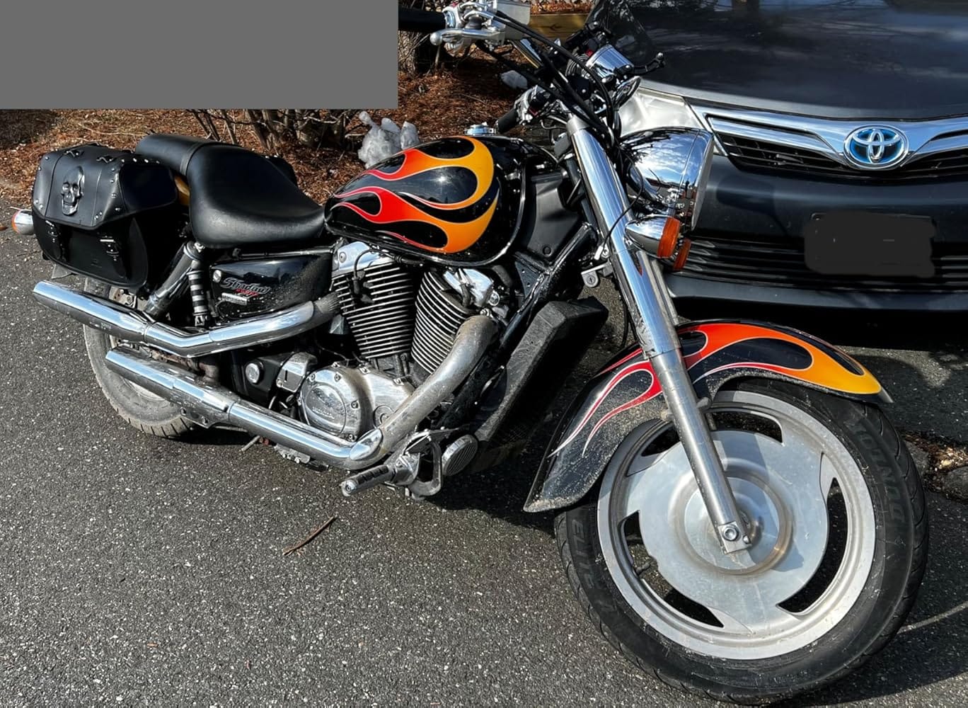 Sadly they didn’t last. I got them as high up from my exhaust as I could, ride around town and no issues. I got on a trip and the buckle melted to my exhaust and BOTH have holes ripped through them! Ugh I sooo wanted these to work! They are pretty, nice s8ze and seemed very durable but there’s no excuse for the holes. It ripped on both down the seams and they barely had anything in them. Not packed down or heavy in the slightest bit.Edit- the company reached out to me and is sending me another set! I am very impressed with their willingness to resolve this! Communication was great!