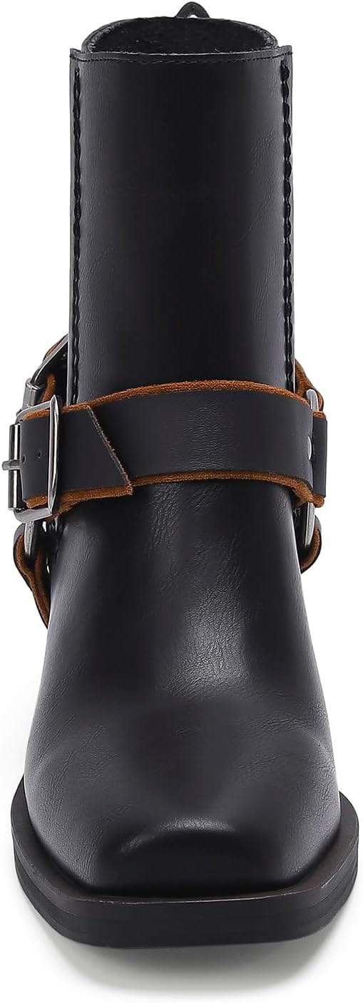 Women’s Square Toe Western Biker Boots | Stacked Heel
